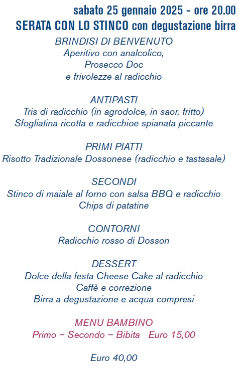 È possibile prenotare allo Stand Gastronomico solo per i sabati 25 gen - 1 feb e 8 feb